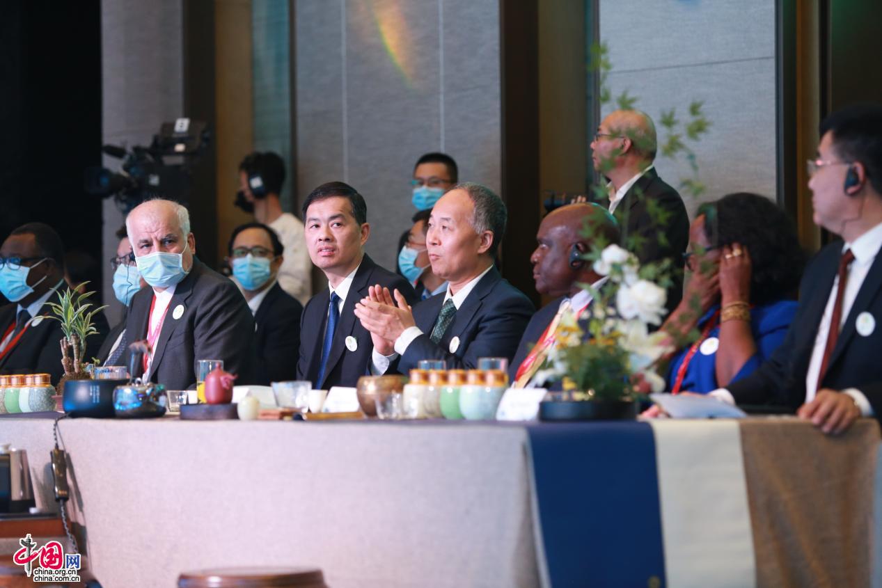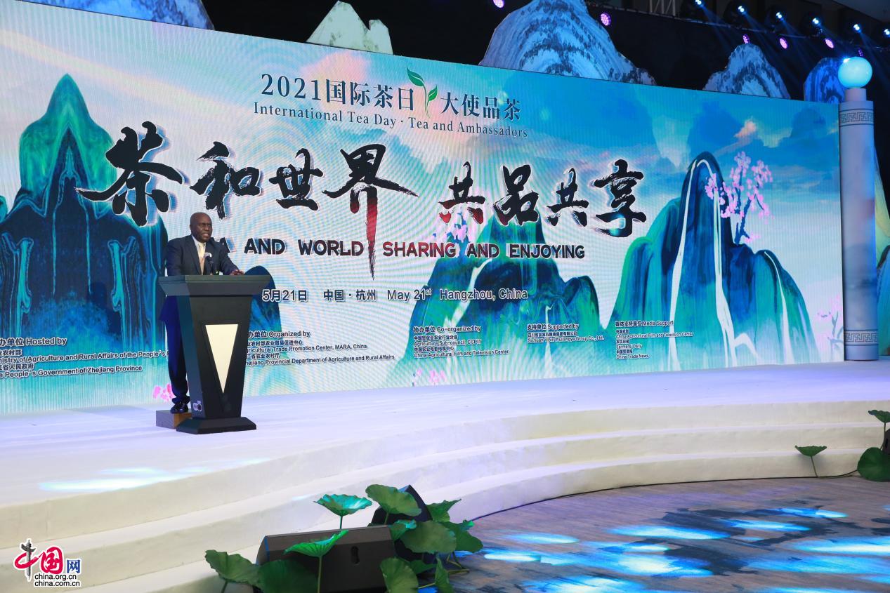 烏干達(dá)駐華大使克里斯普斯·基永加代表駐華使節(jié)發(fā)表致辭,向本次活動主辦方表示感謝,希望借助“國際茶日”加強中烏及全球茶產(chǎn)業(yè)交流合作,提升茶產(chǎn)業(yè)專業(yè)化、市場化、品牌化水平。
