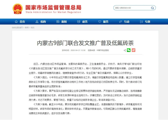 在今年4月21日,內蒙古9部門聯合發文推廣普及低氟磚茶后,邊銷茶的氟問題又成了茶行業的熱點。