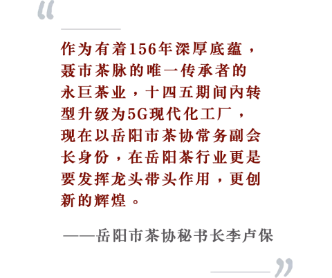 岳陽市茶協(xié)會(huì)長鄭劍山對永巨成為常務(wù)副會(huì)長單位也表達(dá)了祝賀,高度肯定了永巨茶旅融合的發(fā)展思路,鼓勵(lì)永巨在黃茶、黑茶相結(jié)合的新賽道上進(jìn)行更多的探索。