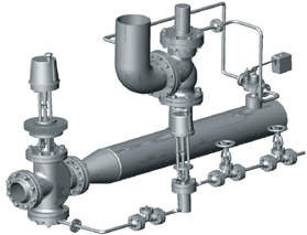 商品描述: 減溫裝置由蒸汽混合管道(帶噴嘴)、給水調節閥、節流閥、截止閥、止回閥、減溫水管、法蘭、標準件等組成。結構采用文丘里管加笛管噴嘴的方式。其特點:無傳動部件,減溫水霧化效果好,噴嘴拆裝方便,便于維修。